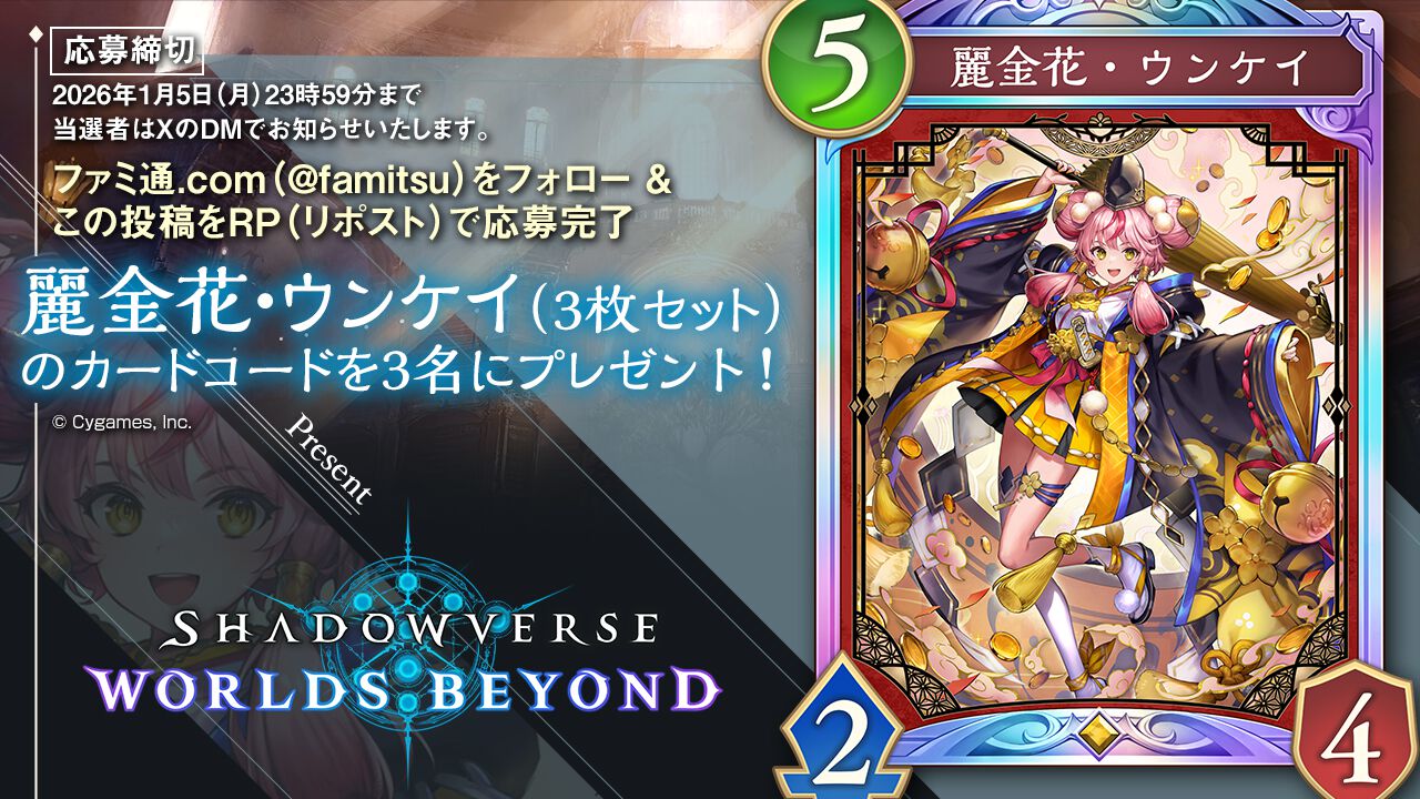 当選者へのみ2026年1月6~7日ごろ、X(Twitter)のDM(ダイレクトメッセージ)にてファミ通.com公式アカウント「@famitsu」よりお知らせします。