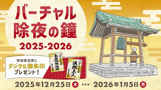 開宗から850年以上続く浄土宗の公式サイトにて、“浄土宗バーチャル除夜の鐘2025-2026”の特設ページがオープンした。
