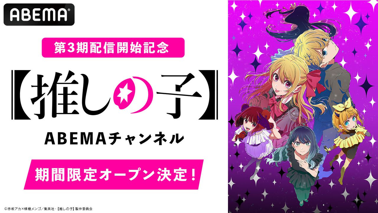 大人気アニメ『【推しの子】』第3期配信開始記念!「【推しの子】ABEMAチャンネル」を1月13日(火)より初開設!第1期&第2期を6日間毎日無料配信