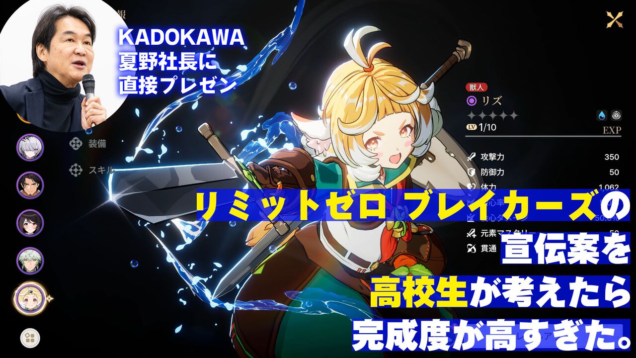N高グループには“プロジェクトN”という学習プログラムがある。これは“毎回異なる「答えのない社会課題」への解決に向けて、社会で必要なスキル を駆使し、具体的な解決策企画とアウトプットを制作する”というもの。2025年10月~12月は『ブレイカーズ』を題材として、その魅力を伝えるための授業が行われた。ひとつはキャラをアピールするイラスト課題、そしてもうひとつが今回の施策。ゲーム全体を広く伝えるにはどうすればいいか。