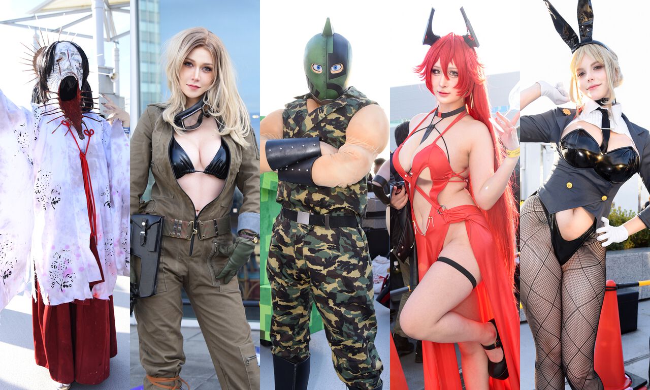 またゲーム作品では、このたびの“コミケ107”でも『勝利の女神:NIKKE』は人気で、同作のキャラクターに扮したレイヤーが続々集結。ほかにも2025年発売の家庭用ゲームでは、『メタルギアソリッド デルタ: スネークイーター』や『サイレントヒルf』などのキャラクターに扮するレイヤーがいて、狐面の男や咲子らしきものといった強烈なインパクトを放つキャラたちに囲まれて、スリーショットの撮影を楽しんでいた参加者の姿も見られた。