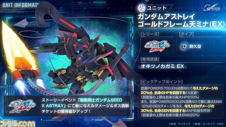 - 効果対象:“SEED”シリーズ、“機動戦士ガンダムSEED ASTRAY”シリーズ