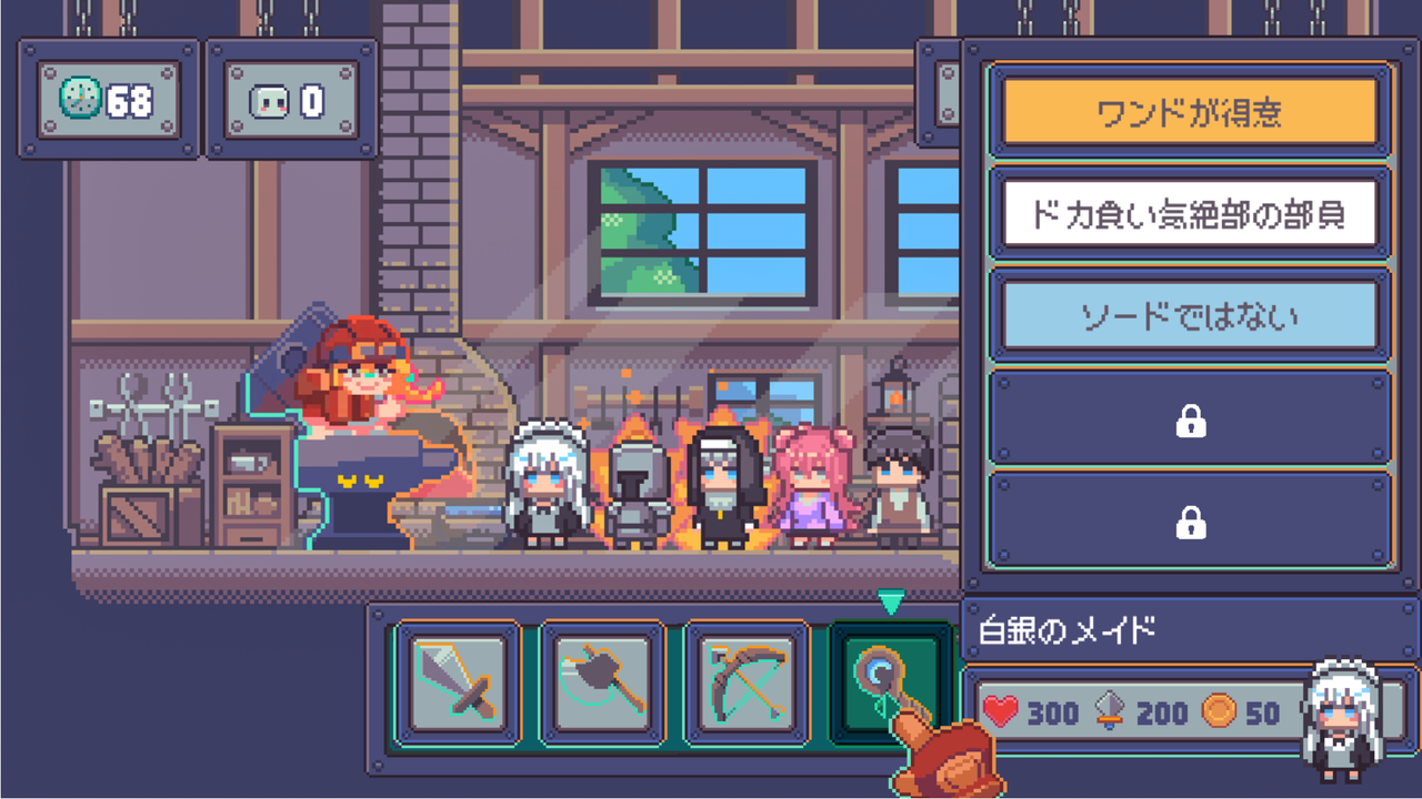 村人ごとに設定されたステータスが、提供した武器の攻撃力や能力に影響します。