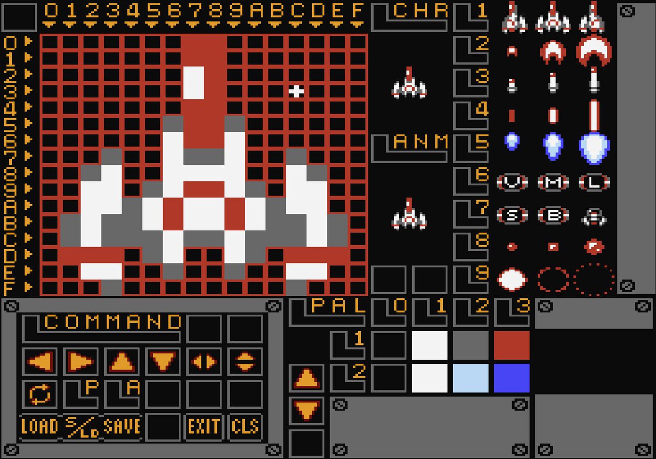 ドット絵でのキャラクターや背景のデザイン、8ビット音源での音楽エディットができ、各種パラメータの設定をすることで様々な敵のパターンを作れます!