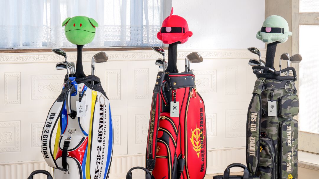 ガンダム(RX-78-2)やシャア専用ザクII、ザクIIをモチーフにしたキャディバッグ、ラウンドバッグをはじめ、シャア専用ザクII、ザクII、ハロのヘッドカバーといった計9点がラインアップされている。