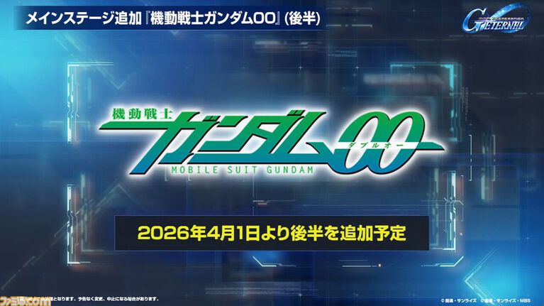 また、同日よりメインステージ『機動戦士ガンダム00(ダブルオー)』(後半)と『新機動戦記ガンダムW Endless Waltz(エンドレスワルツ)』が追加される。