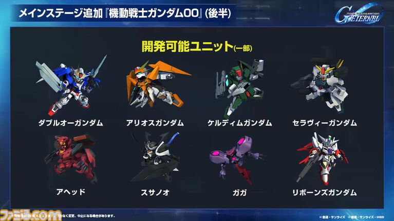 【『機動戦士ガンダム00』後半の開発可能ユニット(一部)】