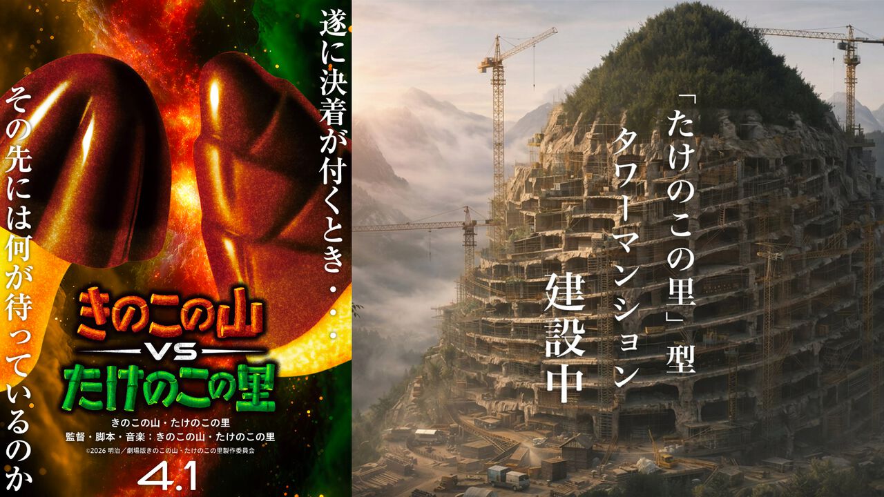 ◤ ◥ 新 情 報 解 禁◣ ◢~全菓子が泣いた~劇場版 きのこの山 VS たけのこの里が公開されるぜぇ~🔥アツい戦いを見逃すなだぜぇ~🎶#きのこの山#エイプリルフール pic.twitter.com/XzIJMPZg75— きの山さん (@kinoko_meiji) March 31, 2026