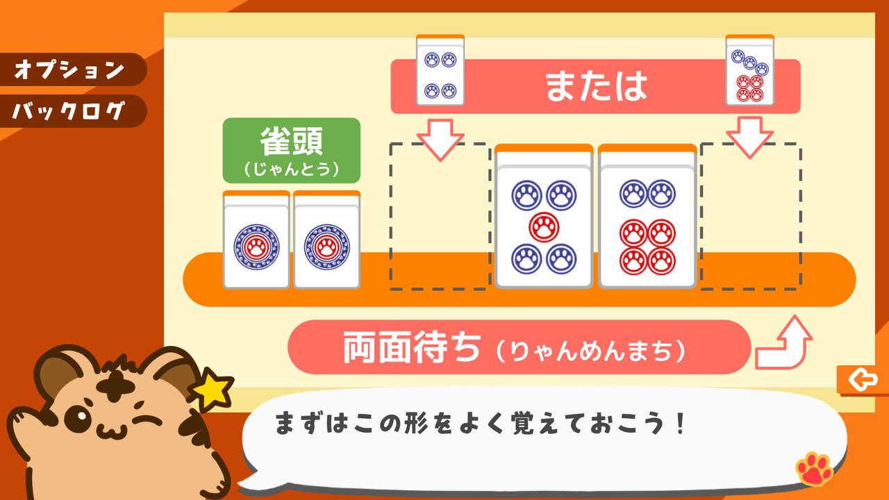 また、同じセクションは何度でもやり直すことができます。加えて各解説内容のバックログ機能や麻雀ゲームのリトライ機能等も実装しており、プレイヤー側のペースで学習を進めることも可能です。