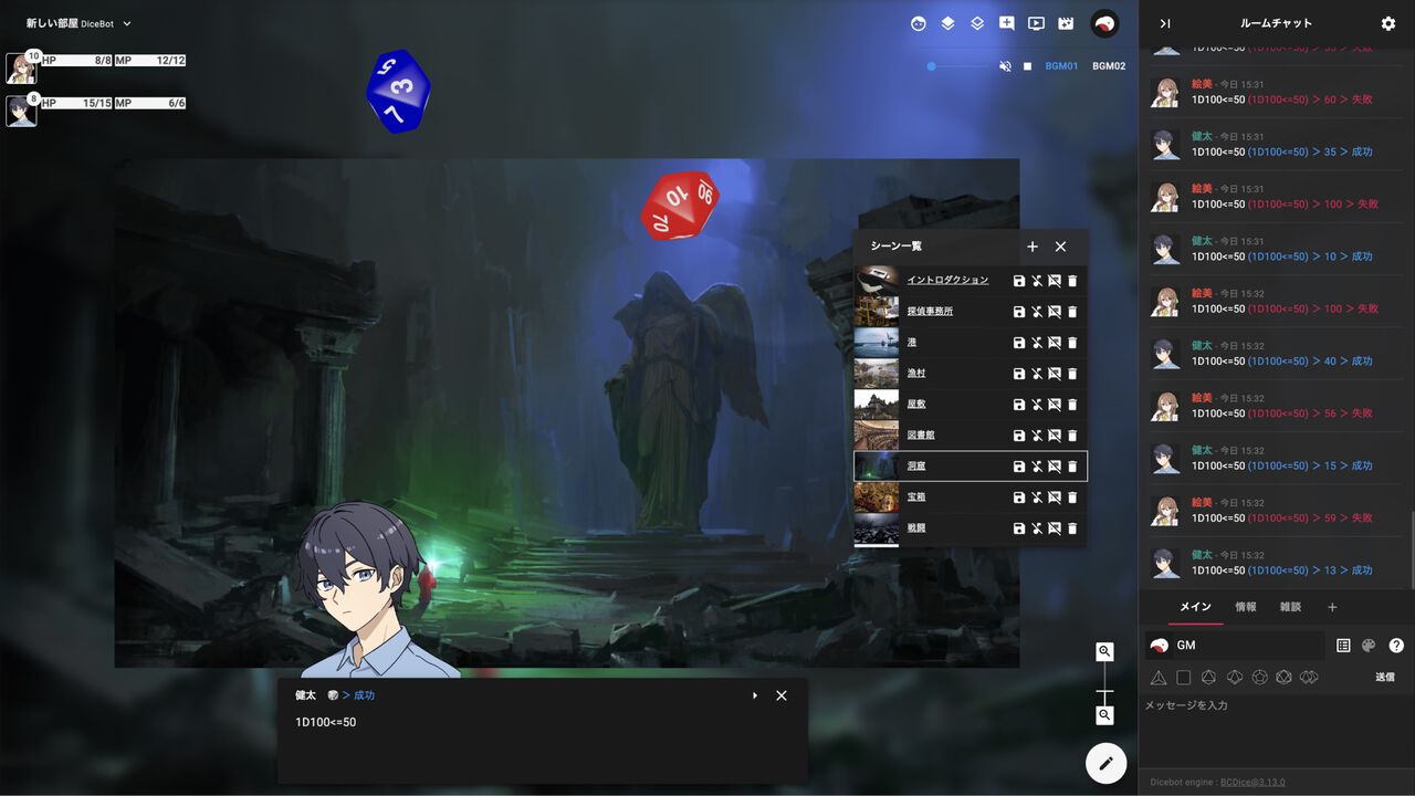 だが今回のアップデートにより、盤面上のキャラコマからチャットパレットの表示と送信が可能になったことで、シナリオ進行でどうしても増えてしまうKPの負担が軽減された。
