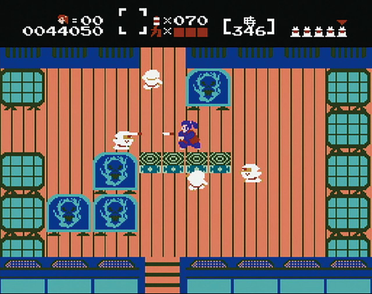 ゴールまでの道のりはとにかく敵の攻撃が苛烈極まりなく、避けるのに必死だった記憶がある。ビュンビュンと飛び交う忍者の手裏剣や爆弾、炎が吹き出すトラップなどには誰もが苦労させられたと思う。