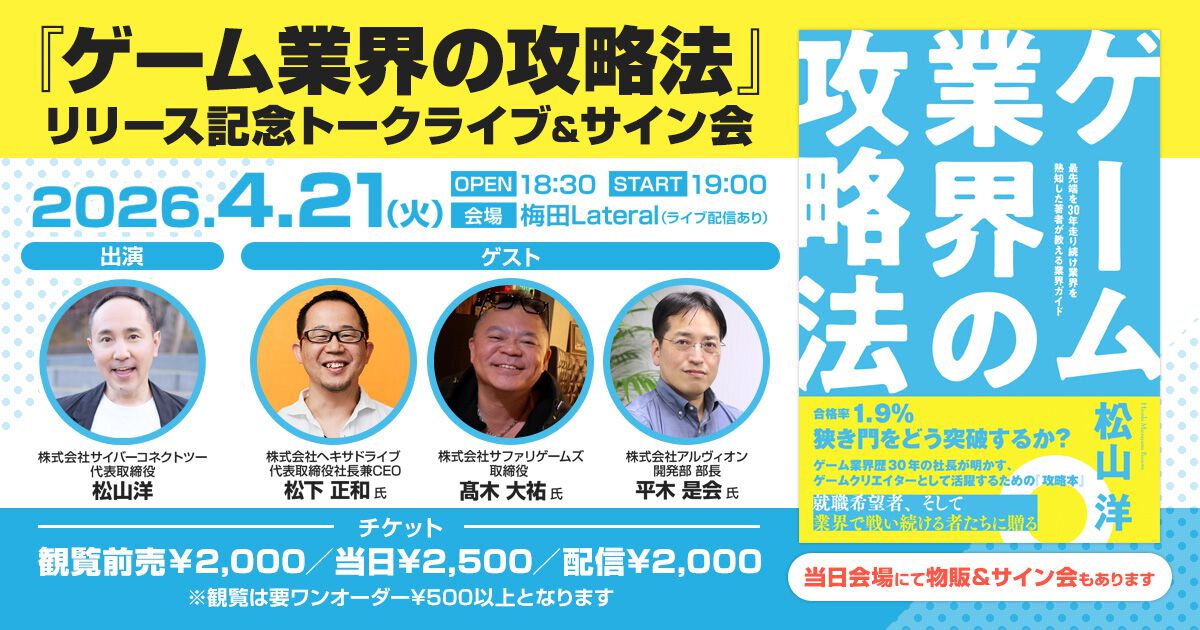 サイバーコネクトツー代表・松山洋の著書『ゲーム業界の攻略法』リリース記念トークライブ&サイン会を大阪・梅田で開催!
