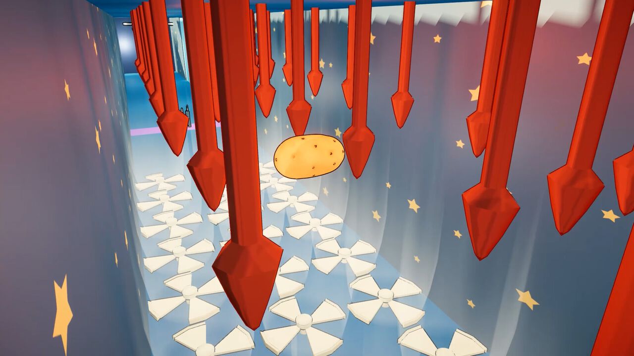 障害物には、地面から生えてくる包丁、こちらを追跡してくるサボテンなどが存在。ほかにもステージには落下を誘うような移動床なども用意されており、理不尽といえるほどの内容に。開発チームも「ALT+F4」(アプリ終了)を連打したくなるほどの難度と太鼓判を押している。
