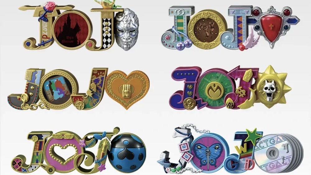 注目したいのはH賞のテキストフィギュアで、各部のデザインで“JOJO”のロゴを表現したものだ。ほかにも、主人公たちが使う武器や身に着けているモチーフなどをデザインしたミニチュアチャーム、ジョジョの世界を旅するような気分を味わえるラバーマグネット、シリーズキャラのクリアポスター、ステッカーコレクションなどのグッズも用意されている。