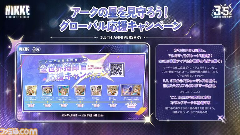 また、番組内ではiPhoneや1/4スケールフィギュア、記念グッズセットが当たる“生放送限定プレゼントキャンペーン”も実施。3.5周年の幕開けを飾る特別な一夜をお見逃しなく。