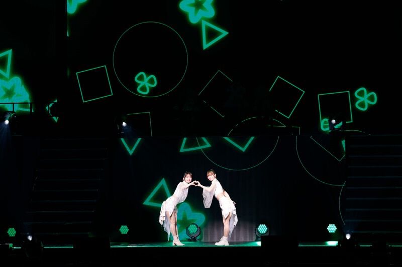 最初のブロックは、イルミネーションスターズの『晴れのちバルーン』でスタート。歌唱中に顔見合わせて笑顔を交わしながら楽しそうに歌う姿がじつに印象的。アルストロメリアによる『パステルカラー パスカラカラー』では、ウィンクを交えた愛らしい表情とかわいさ満点のダンスで会場を多幸感で包み込む。