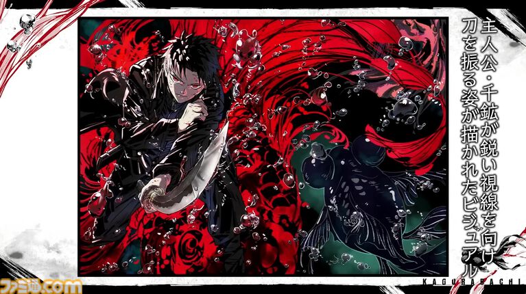 解禁されたティザービジュアルでは、猩(あか)、涅(くろ)、錦3匹の金魚が舞う背景を背に、主人公の六平千鉱が妖刀「淵天(えんてん)」を構え、覚悟を宿した鋭い眼差しで前を見据える姿が描かれている。静と動が交錯する大胆な構図で、物語の幕開けを予感させる躍動感あふれるビジュアルとなっている。