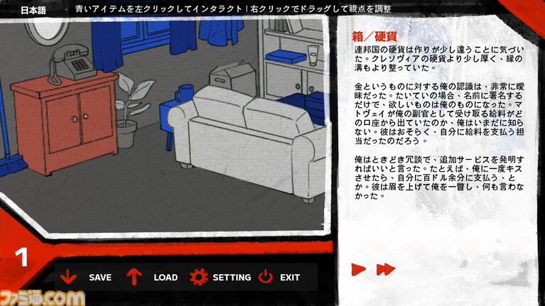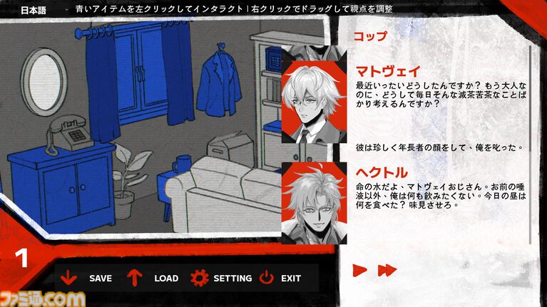 プレイヤーは、窓や家具、日用品などのオブジェクトをクリックすることで、ヘクトルの過去にまつわる断片的な記憶に触れていきます。