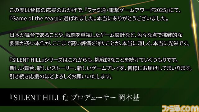 【ファミ通・電撃ゲームアワード2025受賞まとめ】GOTYは『サイレントヒルf』、ゲームオブザイヤー含む3冠を獲得。2冠が4作品並ぶ大接戦に