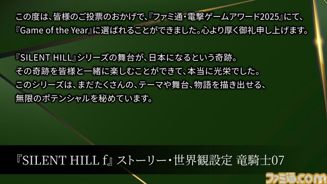 【ファミ通・電撃ゲームアワード2025受賞まとめ】GOTYは『サイレントヒルf』、ゲームオブザイヤー含む3冠を獲得。2冠が4作品並ぶ大接戦に