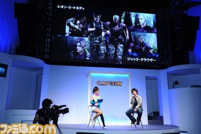 カプコンブースで開催された、Wii用ソフト『バイオハザード/ダークサイド・クロニクルズ』のステージ。プレゼンを行ったプロデューサーの川田将央氏はまず最初に東京ゲームショウ用に準備したプロモーション映像を上映し「Wiiの限界を突き詰めるような」グラフィック表現に仕上げることができた、とみずから太鼓判を押した。