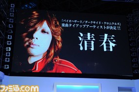 清春はタイアップ曲を作るに当たって、すでにゲームもプレイしたそうで、その感想を「音楽に近いものがある」とアーティストらしい表現で披露。「ゲームのイメージを壊さず、よりよくなるようなもの」を目指し現在鋭意作曲中で、「かっこいい曲を作りたいと思うのでぜひ期待してください」とファンに向けてメッセージを贈った。