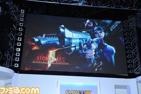 サプライズはこれだけではない。ステージの最後には特報として、ソニー・コンピュータエンタテインメント(SCE)のカンファレンスで発表されたプレイステーション3用ソフト『バイオハザード5 オルタナティブエディション』の情報も公開されたのだ。SCEカンファレンスでは、同作がプレイステーション3の“モーションコントローラ(仮称)”に対応することが明かされたが、こちらのステージではそれ以外の新要素についても紹介。プレゼンターとして登壇したプロデューサーの鈴木美穂氏は、「もうひとつの『バイオハザード5』」として開発を進めていると語り、追加エピソードの収録を発表した。気になる内容は、本編では回想シーンとして描かれていた部分を実際にプレイできるというもので、主人公はクリスとジルのふたり。具体的にどのシーンかは明言されなかったが、公開されたイメージイラストの背景には洋館の内装らしきものが描かれていたので、本編をプレイした人なら大体察しがつくかも。