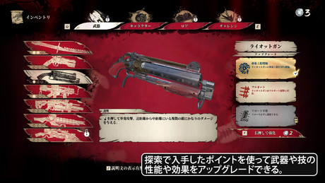 これらは出現する敵の数が多い場面だとかなり有効で、まとめて敵を排除できるので数的不利な状況を緩和できたりする。血しぶきが噴水みたいになったりすることもあるので見ていて楽しいよ。