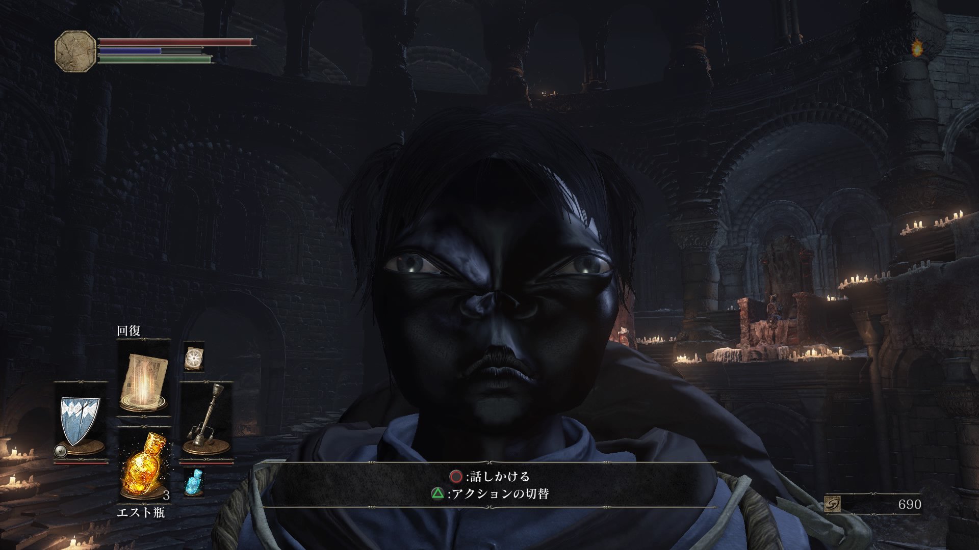 - トータル7時間。このシリーズ毎度のゲーム前の試練。そこそこのボスより心が折れそうでした。そしてポイントは控えめなアゴ! #ds3_cmc #PS4share