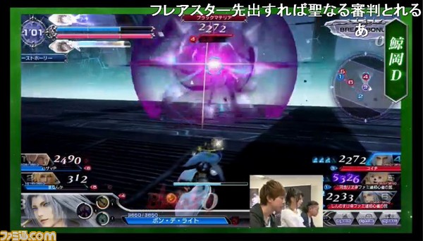 ▲対するチームファミ通は、シャントット(河合リヱ)、クジャ(しんのすけ)、セフィロス(コイチ)といったメンバーで挑む! |