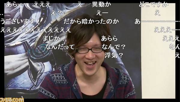 ▲水野氏は挨拶の最後に、つぎに運営を担当するタイトルを発表! なんと『ディシディア ファイナルファンタジー オペラオムニア』! これには「近い!」、「お隣じゃん!」、「涙を返して!」といった怒涛のツッコミコメントが(笑)。これからも、よろしくお願いします! |