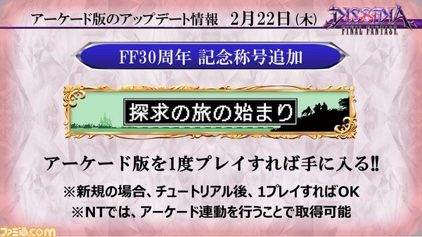 キャラクターの修正情報後は、アーケード版『DFF』のみのアップデート情報と、『DFFNT』で2018年2月16日に実施されたアップデートのおさらい。