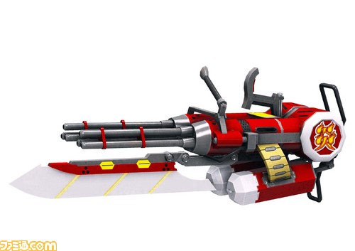 ▲ド直球に“炎”と書かれたファイヤーガトリングガン。従来のガトリングガンとどのくらい操作感が違うのか気になりますねー。 |