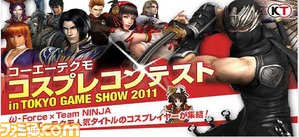 コーエーテクモゲームスは、東京ゲームショウ2011にて、コーエーテクモゲームスの開発チーム“ω−Force”、“Team NINJA”のタイトルを対象にしたコスプレコンテストを開催することを発表した。本日2011年8月10日より、GAMECITYにて参加者の募集が開始されている。