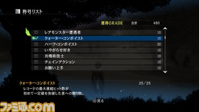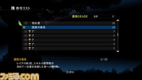 称号は、アイテムを集めたり、キャラクターが成長したり、強敵を倒したり……といったゲーム中の様々な条件を満たすことでゲットできる。中にはPS3のトロフィーと連動したものもあり、その称号を獲得すると、同時にトロフィーを獲得する仕組みになっている。また、各称号にはGRADE(グレード)が設定されており、称号を獲得することで、対応したGRADEも得られる。