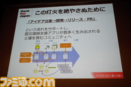 だが、白石氏からは現状の課題も提示された。まずは、イベントは当初、被災地で役立つアプリが生まれてくる土壌を作るための契機にしようとしていたのに、逆にイベント中心のプロジェクトになってしまったということ。そしてもうひとつは、容易に想像できる「自己満足ではないか?」という批判に関するものだ。やはり1日で開発できるものには限界があり、本当に意味があるアプリはまだまだ少ないのだという。今後の展望としては、いつかいいものが出てくるのを期待するだけでなく、被災地のニーズを調査したうえで、それに応える開発を行うようにするといったことも考えているとのこと。いずれにしても、より多くの開発者の継続的な参加が必要だということで、興味がある開発者の参加を募っていた。