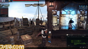 体験会では、参加者とともにプレスも実際にゲームに触ることができた。街でパーティーを募り、船着場からダンジョンへと向かうことになるのだが、ダンジョンに入る前にワンクッションあって、全員の準備が完了するまで、パーティーが停泊中の船上で待つことができるというのがいい感じ。ここはパーティー専用の空間になっているので、ちょっとインベントリを整理したり、「スキルのキーバインド(割り当て)変えるからちょっと待って!」といったような調整は、ダンジョンに入ってからではなく、ここでやってしまえばいいのだ。船上は戦闘のアクションを試せるようにもなっていて、スキルを試してみる人もいれば、果物を叩き割ったり、壺を放り投げてみたり、暴れまくれる。