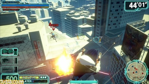 体験会の会場では、”お取引先向け特別内覧会”に出展されたバージョンのゲームがプレイできた。操作できたのは上で紹介した4キャラクターで、それぞれキャラクターごとに異なる武器を装備していた。風澄徹は、主人公らしくバランスの取れた能力を持ち、ハンドガンやマシンガンなど、扱いやすい武器を装備している。片桐鏡華は敵の射撃から身を守るバリアーや、味方の体力を回復するライフルを使えるなど、支援攻撃が行える。羅漢堂旭は見た目通り、高威力のガトリングガンや、ド派手な波動砲が使用可能。草陰稜はトリッキーなキャラクターで、敵の動きを止めるスタンガンなどを装備していた。どのキャラクターも個性的なアクションを持っており、キャラクターやプレイヤーの好みに合わせた戦いかたが楽しめる。