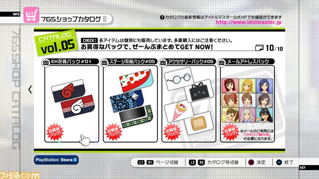※ステージ衣装とアクセサリーは、個別購入でもお買得パックでの購入でも、どちらでも構いません。なお、カタログコンプリート特典がPSストア上に出現したことをお知らせする告知画面は特にありません。