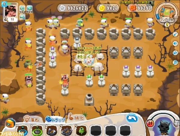 ひつじ村にやってくるオオカミから、進入ルートに罠を仕掛けたり、砲台で攻撃したり、あの手この手で防衛をして、ひつじたちを守る。簡単な操作で一見シンプルなゲームに見えるが、その戦略の数は無限大。頭をひねって戦略を練る楽しさに、ついつい夢中になってしまうことだろう。