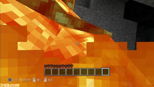 穴の深さによっては落下で即死も有り得るため、せっかく掘り当てたダイヤなどの貴重品を持ったまま地中深くに落下→死亡し、すぐに復活して散らばったアイテムを回収しに行こうにも、どこへ回収しに行けばいいか分からなくなり、そのまま貴重品ロスト……ということもある。しかし、溶岩は大抵、深いところにあるものなので、そんなに怖がることはない。まして、地上を真横に掘り抜いているときに足元に穴ができて、落ちた先が溶岩なんてのは低確率だ。そんなわけで「死と隣り合わせの男塾名物も『マインクラフト』にかかれば、かたなしじゃのう!」と男塾言葉になりながらツルハシでガツガツと掘っていると、突然の落下。下は……溶岩!。