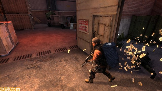 プレイしたのは、大金の入ったマネーバッグを奪い合うという“ブラックマネーモード”。バッグを奪って1分間守り切るか、タイムリミット終了時点でバッグを持っているチームの勝利となる。自チーム以外の全員がバッグを取りに来るので、ゲームのペースがかなり早い。バッグを狙うプレイヤーが、さらにやってきたプレイヤーに撃たれたり、ヤケクソで投げたグレネードで死屍累々なことになったりと中々カオス。トドメを刺すための踏みつけ動作なんかもあって、これをやられると実に悔しい(踏まれる前に味方に助けてもらうと復活可能)。