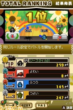 みんなと対戦するバトルロイヤルモード、仲間と協力して相手チームと戦うタッグバトルモード、6種類のバトルルール、4種類のバトルカップ、7種類のステージなど楽しさ満載のボリュームで、いつまでも飽きる事なく遊んで頂けます。条件を満たすと登場する隠し要素もあります。