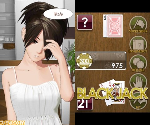 『「いつでも一緒に。」BLACKJACK』は、6人の女の子とブラックジャックを楽しむゲームです。癒し系の“かすみ”、元気一杯の“「あい”、大和撫子な“すみれ”、セクシーな“あや”、恥ずかしがりやな“えりか”、ちょいワルな“つばき”。つぎつぎに現れる個性豊かな女の子たち! また、ヒロインのかすみは、プレイする時間に応じていろんな姿を見せてくれます。昼は学校で制服、夕方はリビングで私服、夜は寝室で……。