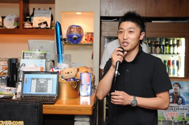 2012年10月4日に、プレイステーション3版が発売を控える人気サッカーゲーム『ワールドサッカー ウイニングイレブン 2013』。その発売に先駆けた2012年9月19日、東京・渋谷のスポーツバーである“ダイニング アンド バー エスタディオ 渋谷店”にて、同作のメディア大会が開催された。この大会は、ふたり一組で臨むペアマッチ方式で争われ、週刊ファミ通編集部チームを含む16のチームがトーナメント方式で対戦。1回戦敗退チームは下位トーナメントに回り、上位トーナメントと下位トーナメントの優勝がそれぞれ争われる。
