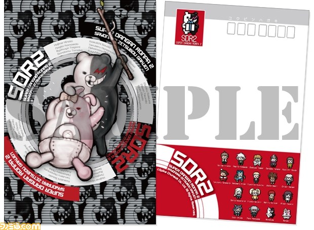 また、2012年10月31日に発売される“スーパーダンガンロンパ2 さよなら絶望学園 超高校級の公式設定資料集”にオリジナルグッズをつけた限定セット“ebtenDXパック”も予約受付中となっている。