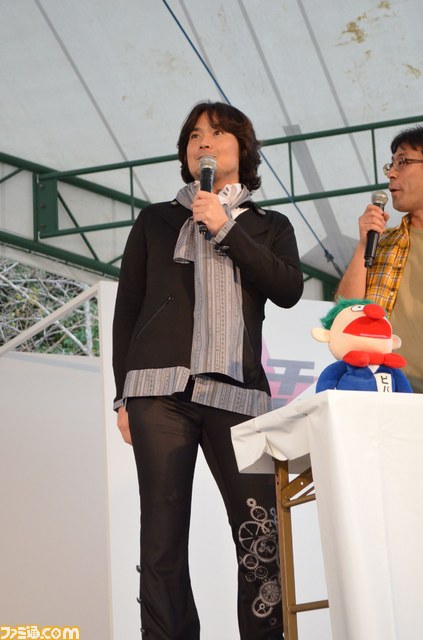 発売まで1ヵ月を切った、バンダイナムコゲームスのプレイステーション3用ソフト『テイルズ オブ エクシリア2』(2012年11月1日発売予定)のさまざまな情報が公開された本イベント。最初に、バンダイナムコスタジオの馬場英雄プロデューサーが、アパレルブランド“PUTUMAYO(プトマヨ)”とのコラボレーション服を身にまとって登場した。