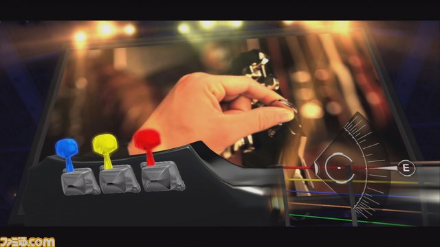 肥後直巳氏(以下、肥後) アメリカ・サンフランシスコで内部開発を立ち上げることになり、私とディレクターのポール・クロスを中心に動いていました。最初は3Dアクションゲームを作ろうと、企画を弊社社長のローレン・デトックに提案したのですが、「いいアイデアだが、キミたちはこれを作ってほしい」と、ギターのトーンを認識できるアルゴリズムの資料を渡されたのがきっかけですね。ローレンはギターが好きで、ギターを使ったゲームを作るために、そのアルゴリズムを作った会社を買収しましたが、どういうゲームにするか具体的には決まっていませんでした。そこで我々が作ることになったんです。しかし、私とポールはギターがいっさい弾けません。ギターの“ギ”の字も知らない我々がプレイできるように、ギターやピックの持ちかたからギターの弾きかたまで、すべてを学べるものを目指しました。