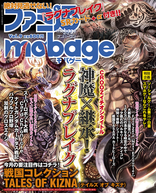 『ファミMobage Vol.9』が発売中。今号は、豪華限定アイテムセットが付く『神魔×継承!ラグナブレイク』に大注目。『戦国コレクション』や『TALES OF KIZNA(テイルズ オブ キズナ)』を始めとする人気タイトルの最新情報や攻略情報のほか、『スーパーロボット大戦Card Chronicle』や『ナイトガンダムカードダス戦記』などの新作タイトルのとっておき情報もお届けする。もちろん、それらもアイテム付き!
