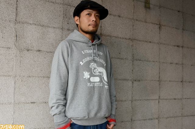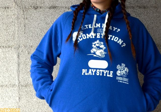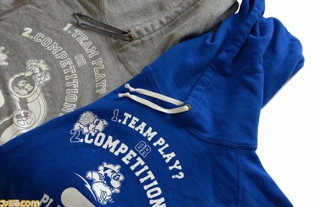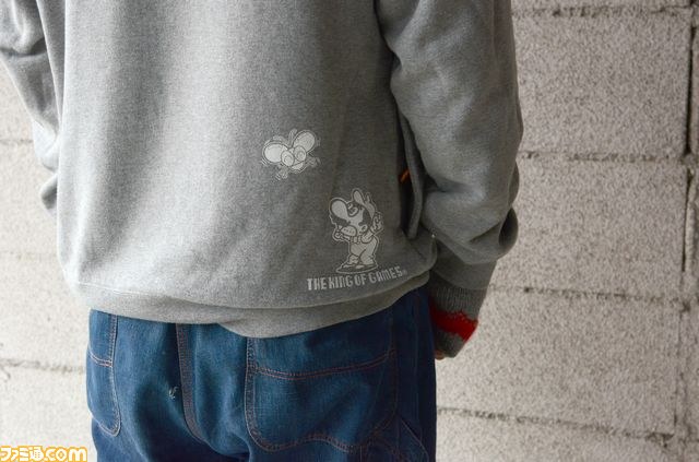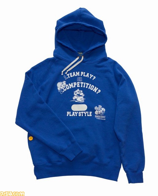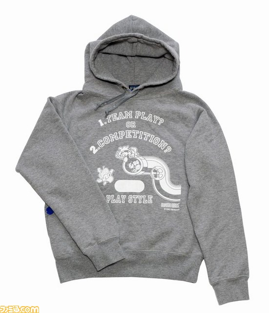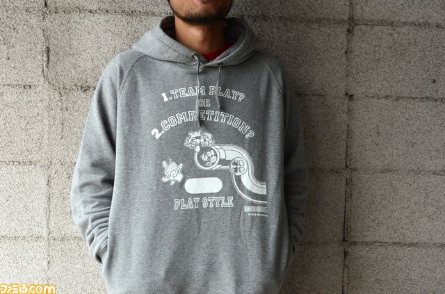 初代マリオブラザーズのふたり同時プレイ。アナタのプレイスタイルは協力してクリアしていく、“仲良し型”? もしくはお互いに邪魔を仕合いながらの血みどろ“ライバル型”? そんな問いをアメカジのスポーツTシャツを下敷きにして配置。イラストは当時のマリオとルイージ。パーカーならではのオリジナルボディカラー仕様。